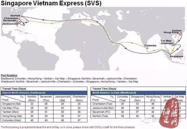 SVS航线挂靠香港、盐田、头顿市、新加坡、苏伊士、诺福克、萨瓦纳、杰克逊维尔、查尔斯敦、好望角/苏伊士运河、科伦坡、新加坡、香港。