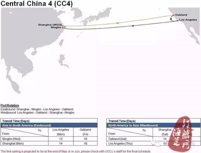 CC4航线将恢复其原往返华中及美国西岸航线,靠港次序为上海(外高桥)、宁波、洛杉矶、奥克兰、上海(外高桥)。另继续于亚洲及北美之间为主要港口交叉连接提供周班服务,随市场需要,G6将继续作出调整,亦提供亚洲-欧洲及泛大西洋航运服务。