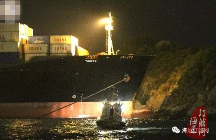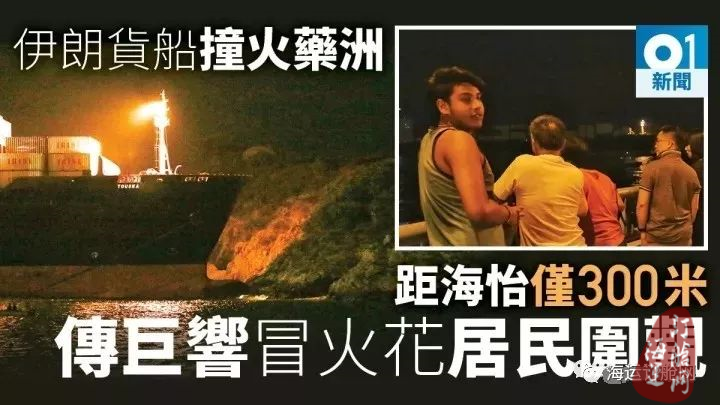 『头条』伊朗籍集装箱船TOUSKA直撞香港小岛搁浅,船头冒火花!