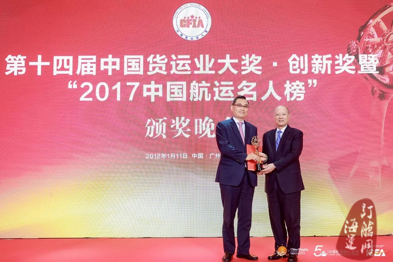 2018年1月11日晚,第十四届中国货运业大奖·创新奖暨“2017中国航运名人榜”颁奖晚会,在广州南沙区南沙大酒店盛大举行,“2017中国航运名人榜”百位上榜人物正式揭晓。