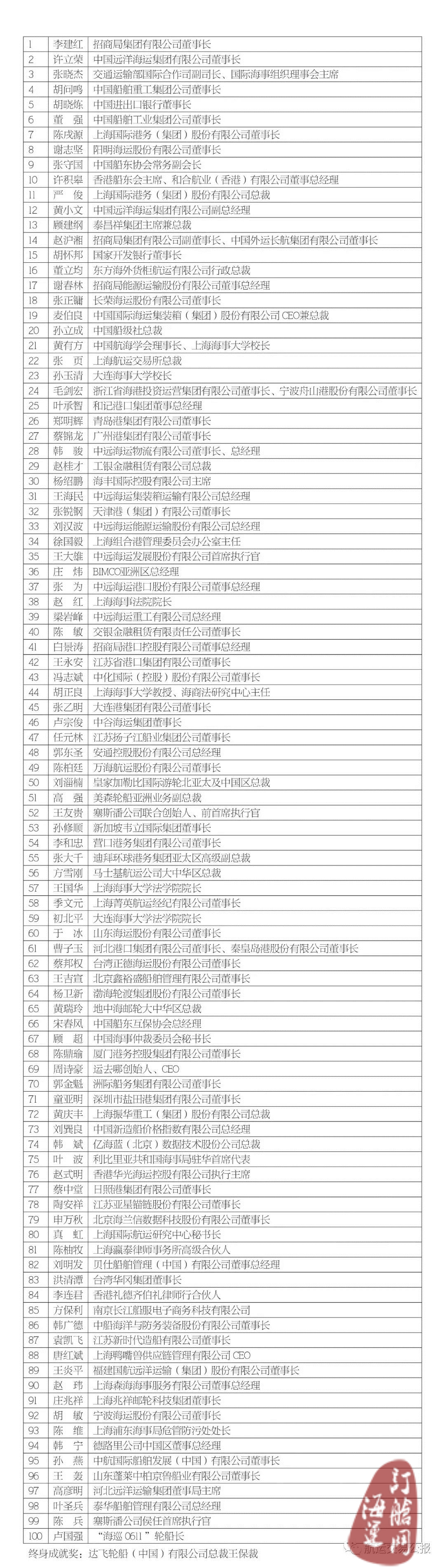 『榜单』2017年度中国航运百人榜颁奖盛典在上海举行,招商局李建红位列榜首!